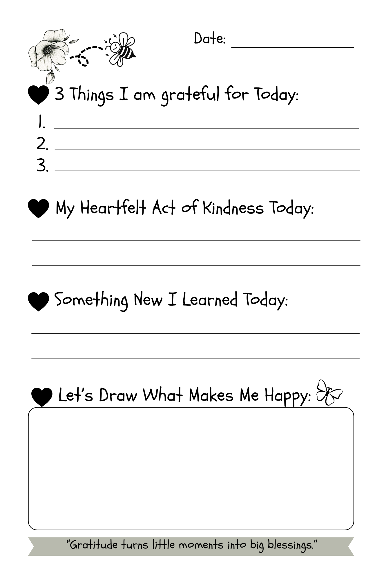 Perfect for ages 6–10, this guided gratitude journal helps kids grow happy hearts and thankful minds — one little moment at a time.